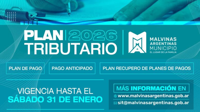 El municipio de Malvinas Argentinas presentó el Plan Tributario 2026, una iniciativa destinada a facilitar el cumplimiento de las obligaciones fiscales y acompañar a los vecinos con distintas alternativas de regularización. El plan contempla opciones de financiación, descuentos y quitas sobre deudas vencidas, con beneficios vigentes hasta el sábado 31 de enero de 2026.