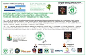 El presidente y representante de Vecinos Ayudan Vecinos, de Montevideo, Uruguay, el Sr. Juan Rodríguez, firma convenio de colaboración mutua con el Foro Mundial de Padres Contra la Violencia y el Abuso Sexual en la Infancia, Créeles Siempre, que preside el Sr. Leonardo Gabriel Pigliacampi.